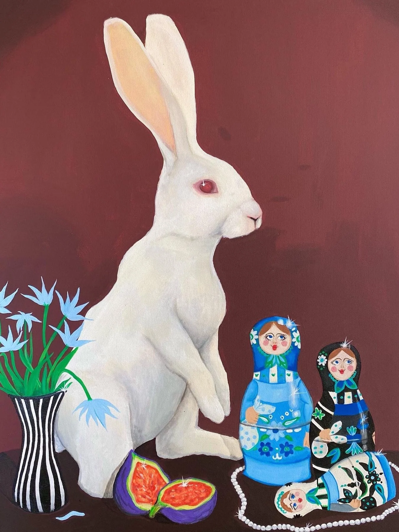 Elizabeth Bradford is a Savannah Georgia based fine artist, mainly a still life specialist. She is deeply inspired by maximalism and the kooky old bones of Savannah. She strives to bring moodiness, nostalgia, and all things fabulous to the table when creating her pieces.